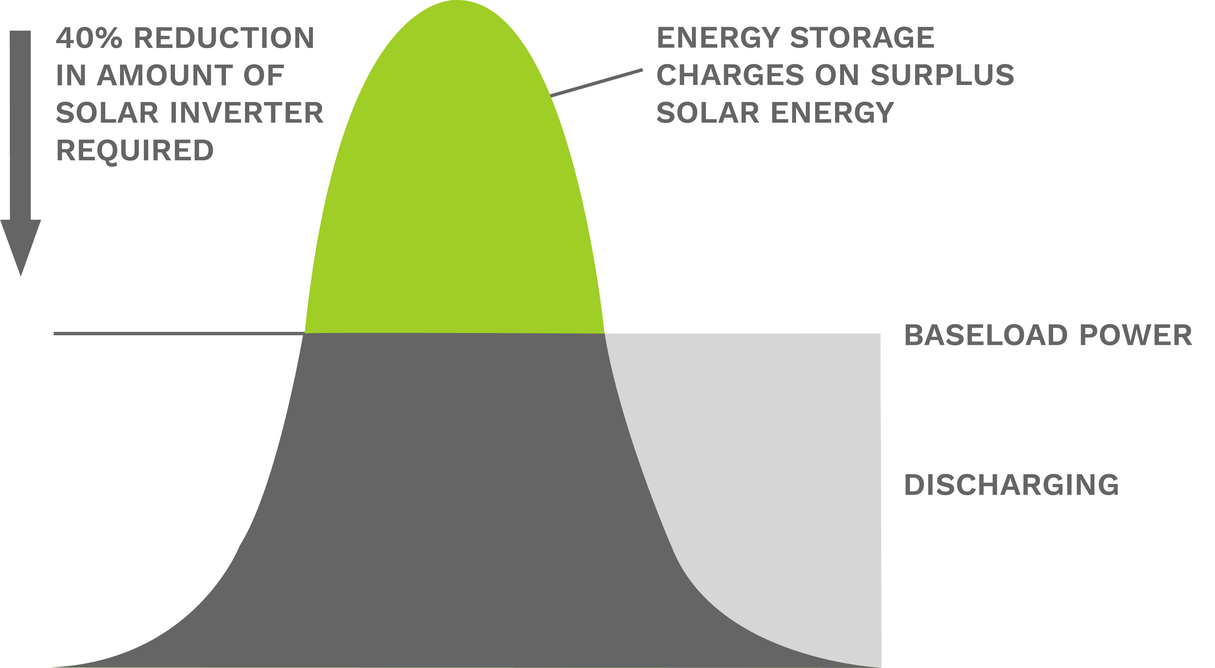 DC-Coupled Energy Storage not only recaptures the clipped energy but can enable DC ratios of 2+. This equates to a >40% reduction in the amount of solar inverter required (AC). conversely, >60% more DC solar to be installed behind a given AC interconnection limit. Additionally, the Energy Storage System will organicallyshift energy from the middle of the day (belly of the duck) to the evening when solar is ramping down (head of the duck).